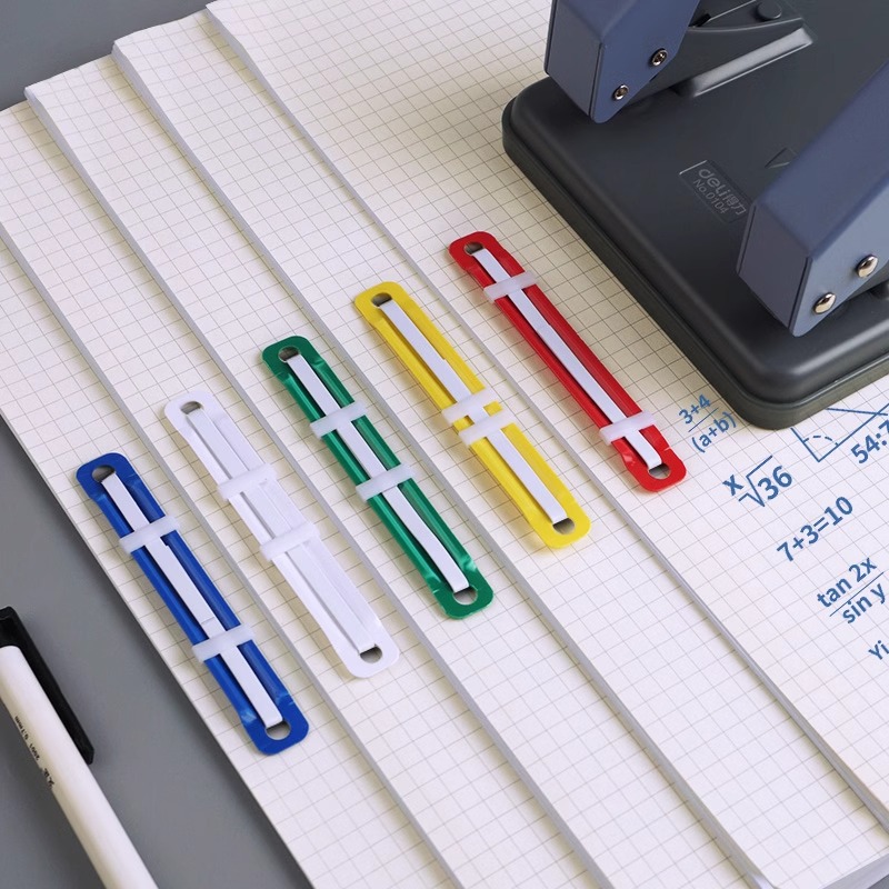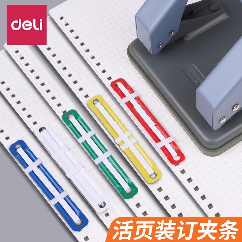 得力装订夹活页塑料双孔装订夹条50个/盒 文件装订夹打孔机耗材打孔器彩色装订会计凭证两孔A4夹子装订扣