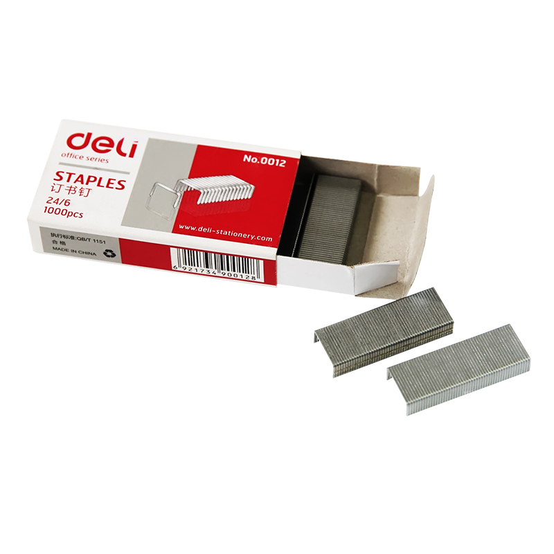 得力0012号订书针24/6办公用品订书钉常规通用型号小号1000枚/盒