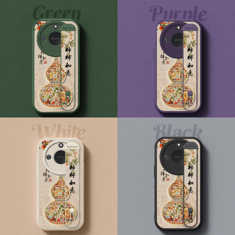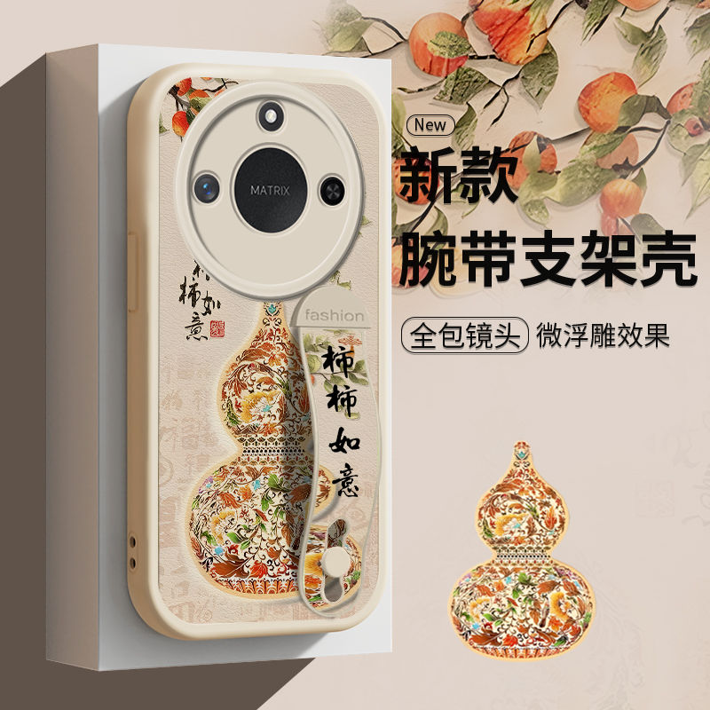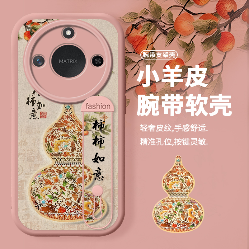 金丝宝葫芦适用荣耀x60手机壳华为x60pro新款小羊皮honor腕带支架全包防摔女高级国风艺术硅胶防摔保护软套