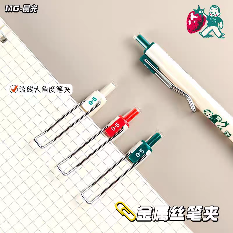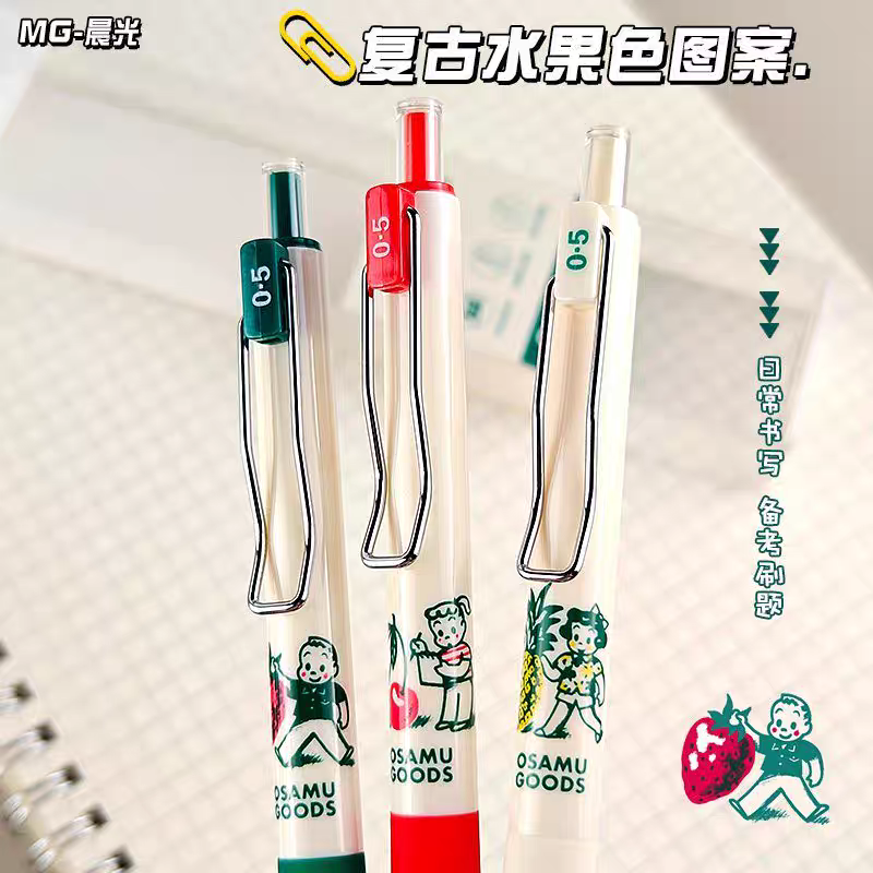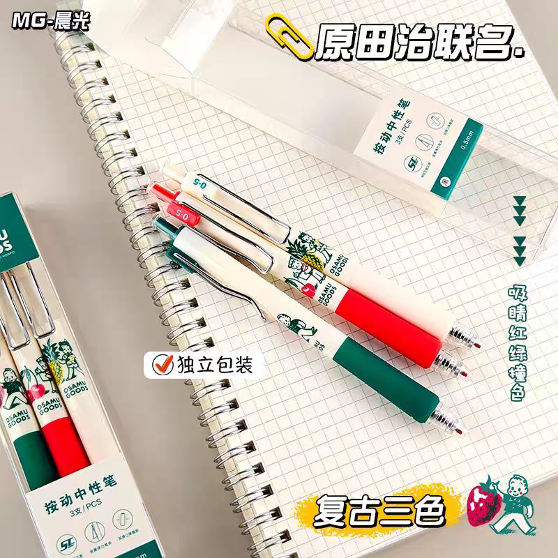 晨光MASMARCU原田治按动中性笔速干ST尖0.5mm黑学生刷题笔J7230