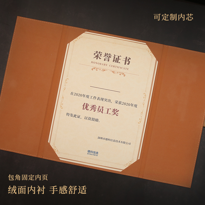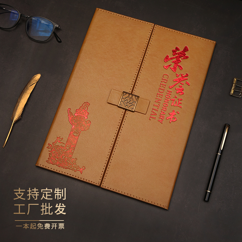 高档荣誉证书聘书结业证书外壳皮面中国风A4皮面荣誉证书聘书定制外壳结业证书烫金logo定制免费打印内芯文案