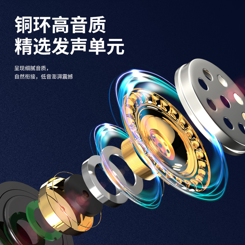 V3金属铜环喇叭重低音安卓智能线控通话听歌入耳式有线耳机批发