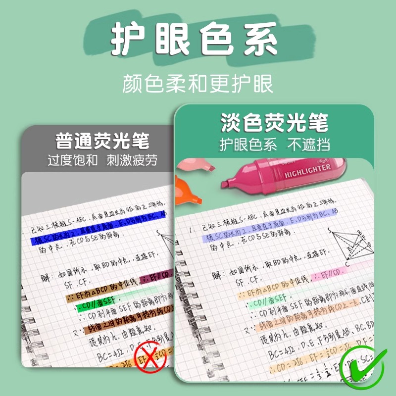 三年二班护眼荧光笔高颜值荧光标记笔学生用多色记号笔彩色划重点手帐手账笔做笔记本马卡龙淡色萤光笔银光笔