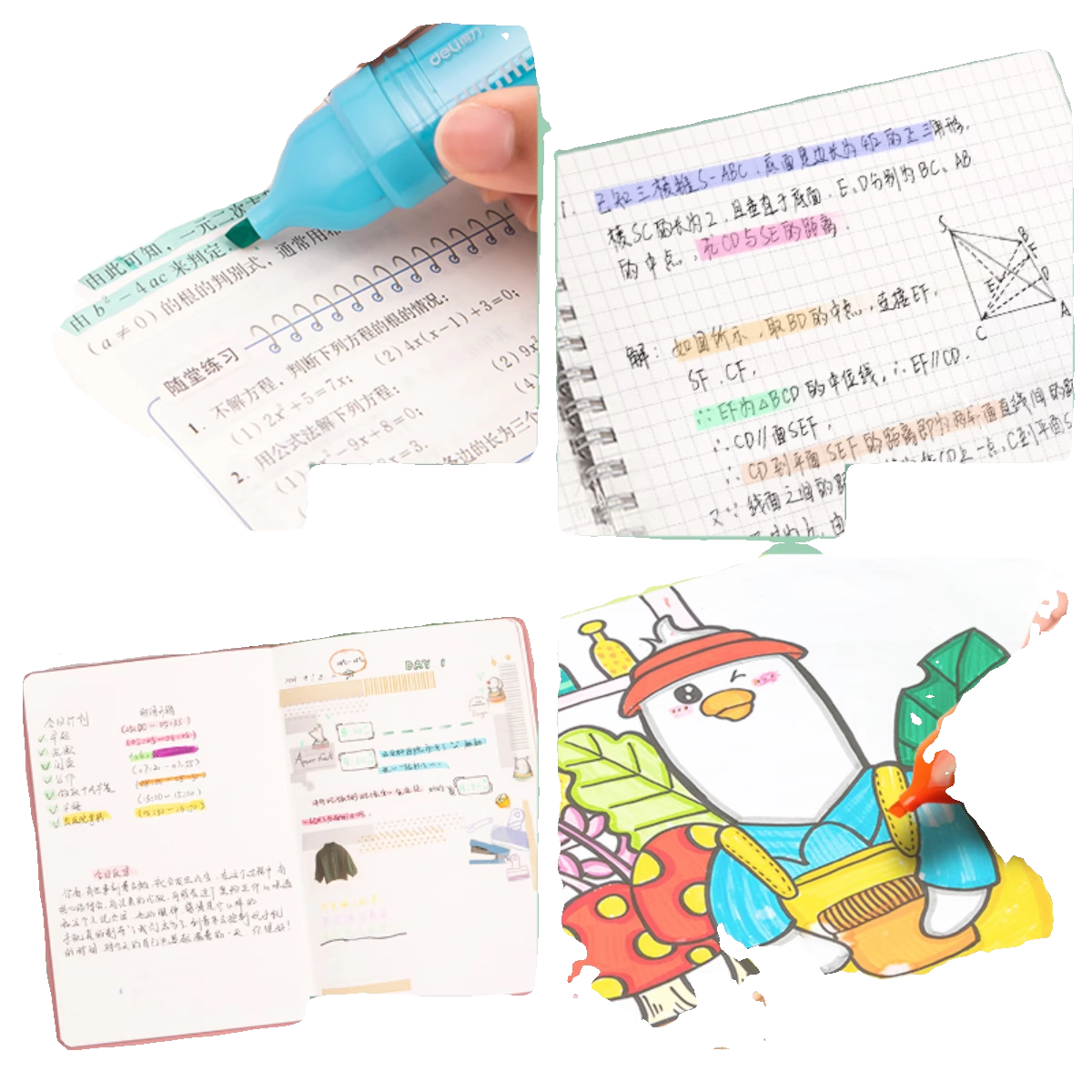 得力荧光笔学生用高颜值手账笔标记笔DIY手账笔彩色划重点用小蛋壳柔和色系粗细线幅儿童涂鸦绘画萤光笔