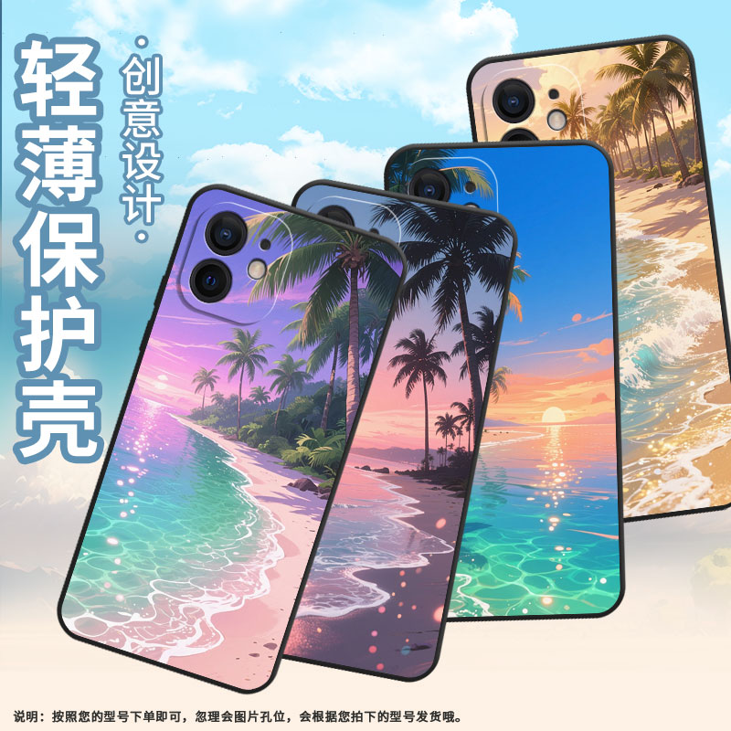 适用于苹果5/12手机壳轻薄SE2防摔适用于iPhone7海岸线风景A1863全包边X保护套XSmax商务A2221全包边磨砂壳