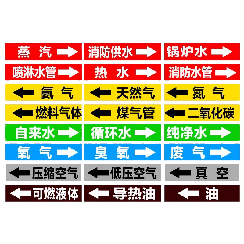 高区给水管道标识贴中低区给水管道冷却水冷凝水循环水纯化水自来水空调水污废水排水消防喷淋水流向箭头贴纸