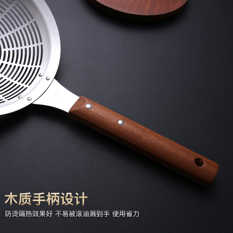 实木不锈钢大漏勺捞勺油炸火锅过滤网隔渣勺加厚网筛饺子捞面焯水