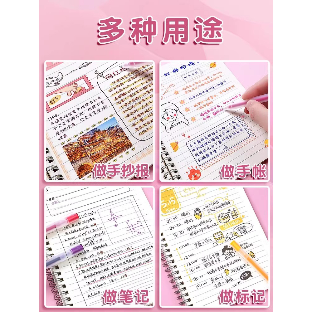 得力彩色中性笔做笔记专用划重点做标记按动式学生用高颜值全套荧光笔芯水性笔记号笔速干多色手账用画画彩笔
