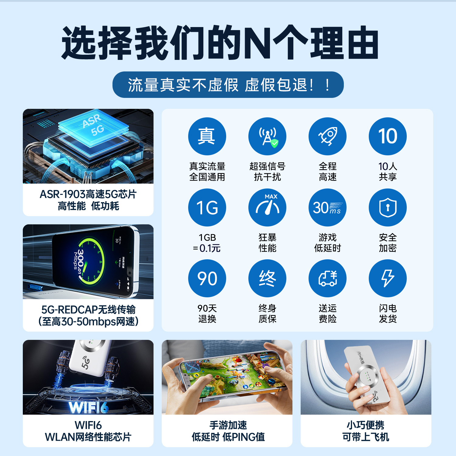 【高速网络】可插卡2025真5G REDCAP适用广电移动电信联通全网通随身WIFI6无线网络车载流量WILF路由器不预存