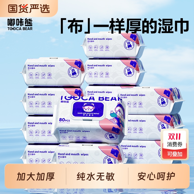 80片/包嘟咔熊湿巾纯水无敏家用学生宿舍清洁宝宝手口屁专用