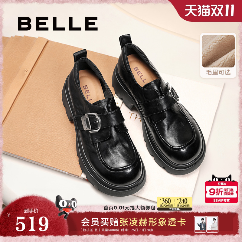 张凌赫推荐百丽黑巧乐福小皮棉鞋厚底加绒冬季女黑色单鞋雪地靴预