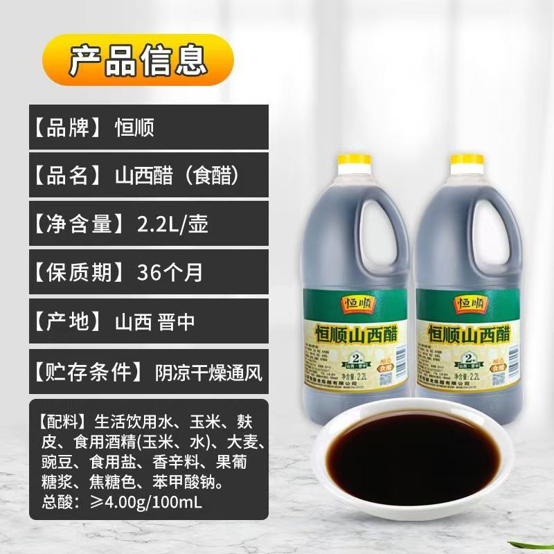 恒顺山西醋2.2L/瓶陈醋山西特产食醋凉拌厨房调味商用大桶