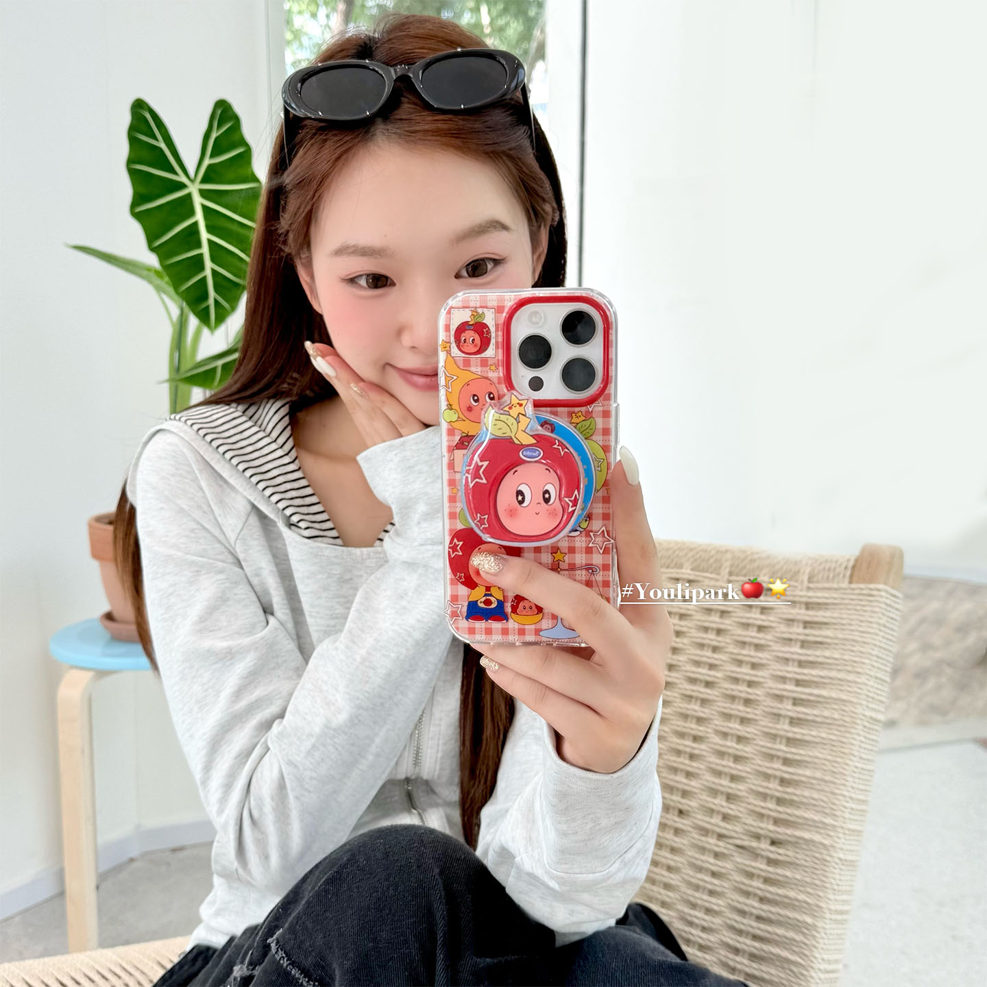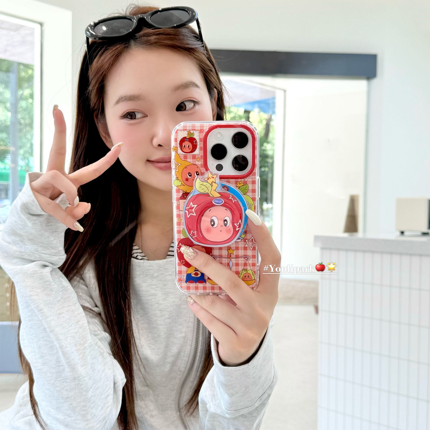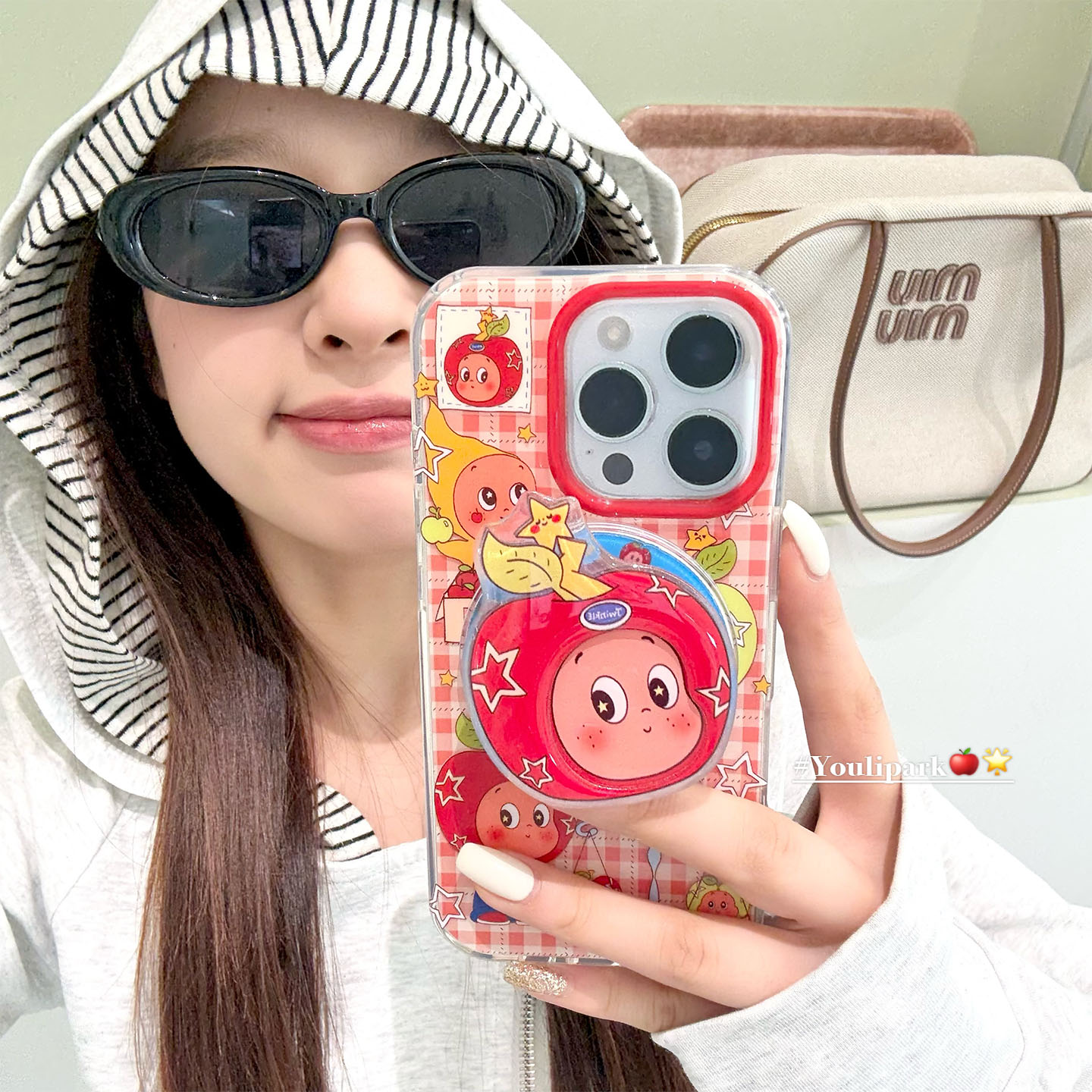 由里公园ins可爱红格纹苹果星星人磁吸支架15适用17pro苹果17ProMax手机壳iPhone16全包17新款14Promax保护套