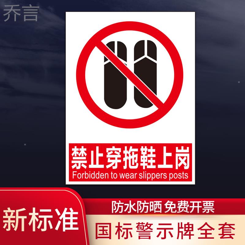 禁止穿拖鞋上岗安全标识牌操作管理规范规程规章制度宣传栏标语海报挂图墙贴告示警示提示标识标示标志牌