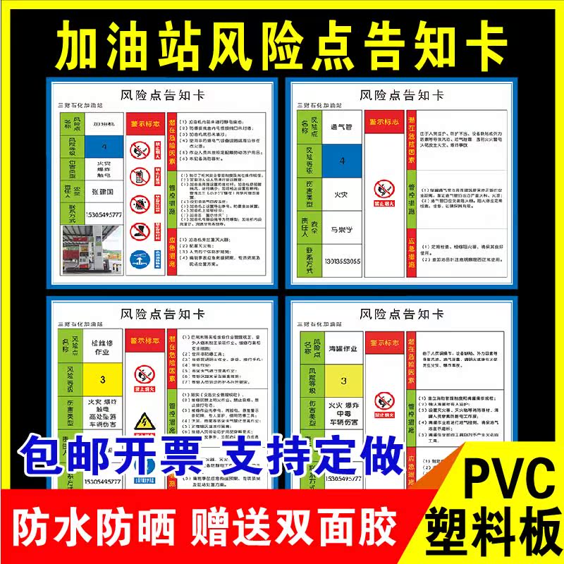 加油站风险点告知卡检维修清油口罐区通气管作业营业配电室摩托车危险因素应急管控措施警示标识牌