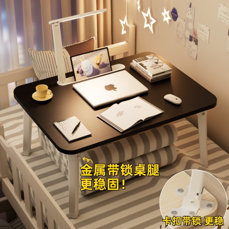 现货速发床上小桌子带台灯可折叠学生宿舍学习桌炕上办公家用懒人