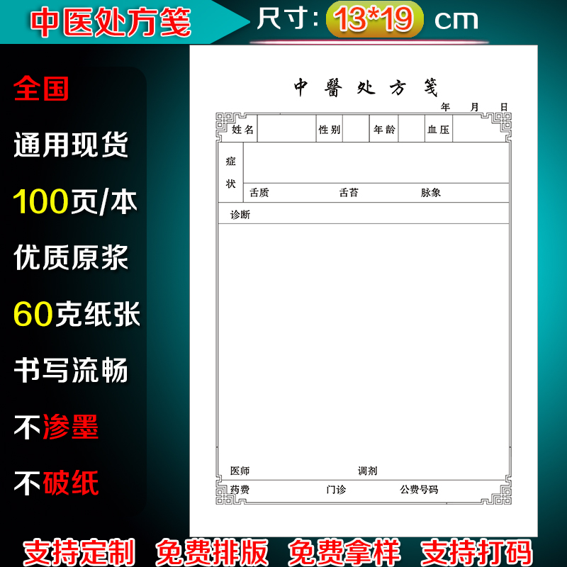 中医处方筏卫生室诊所处方签中医门诊处方本西医处方单医用处方笺