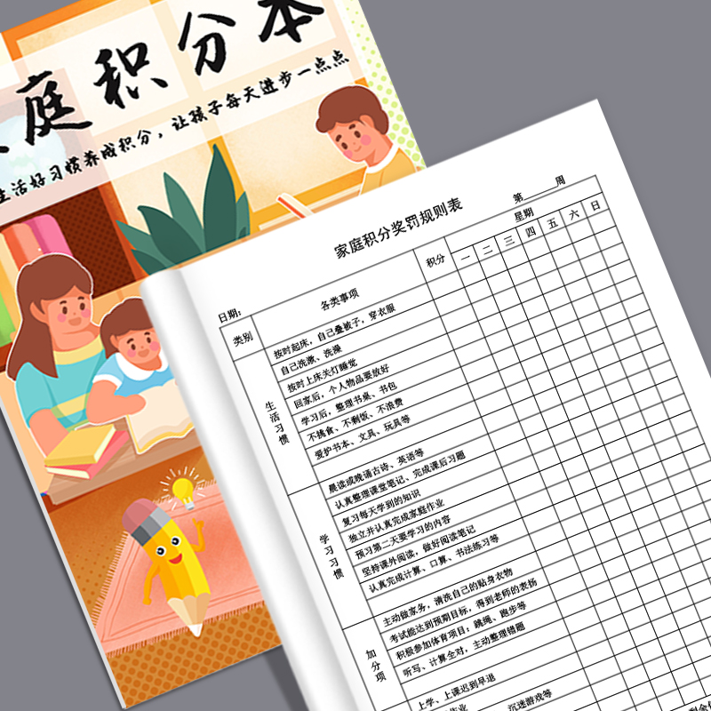 家庭积分本小学生节假日学习生活劳动奖罚规则表每日坚持时间记录本家用儿童生活好习惯学习好习惯养成打卡本