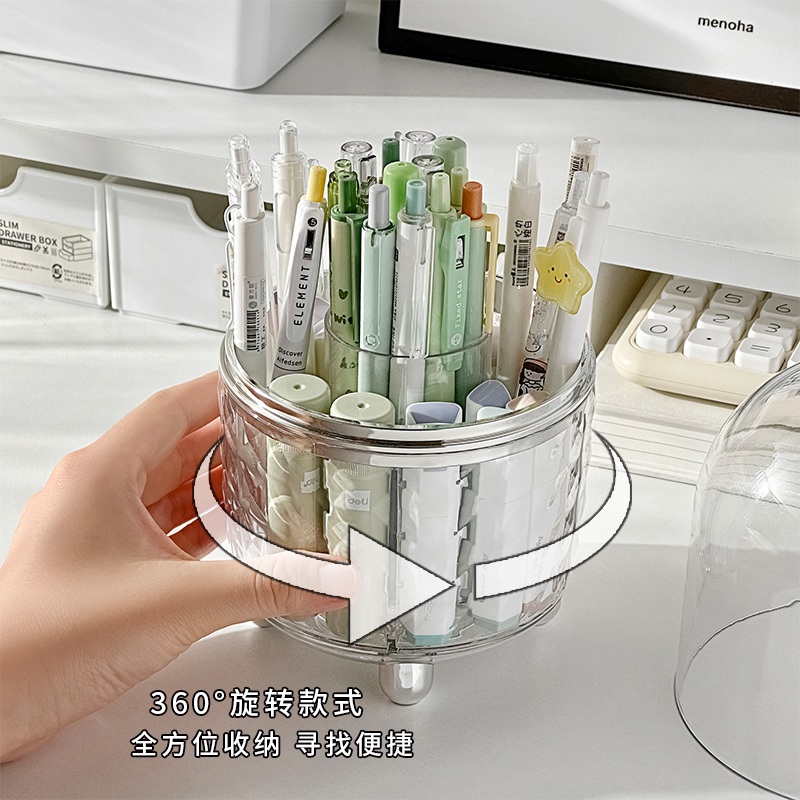 三年二班旋转笔筒透明大容量学生桌面办公收纳桶教师节创意礼物K