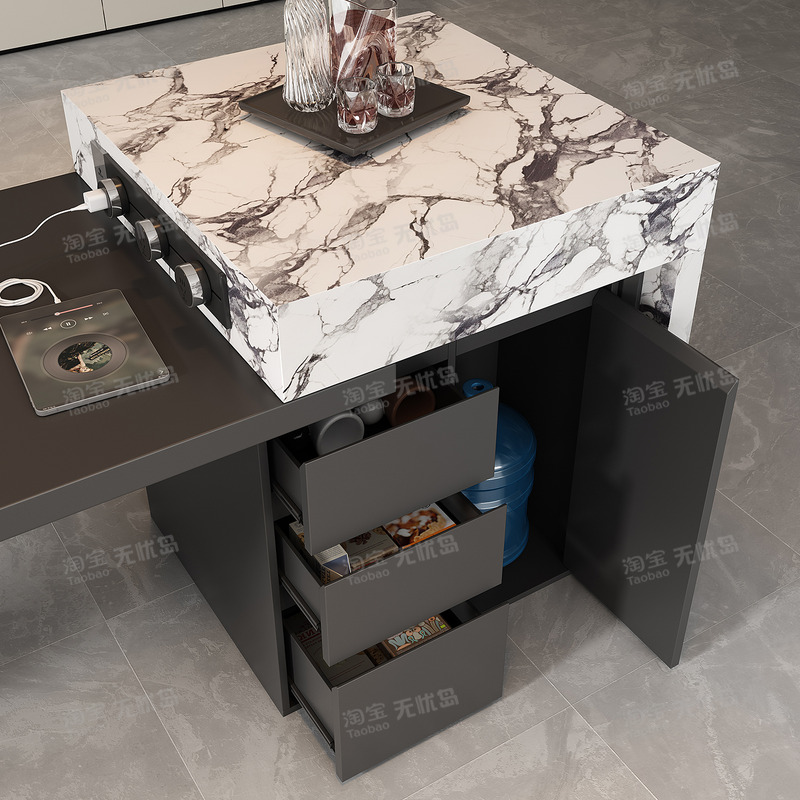 岛台餐桌一体小户型家用可伸缩岩板中导台加水槽泡茶餐厅高级导台