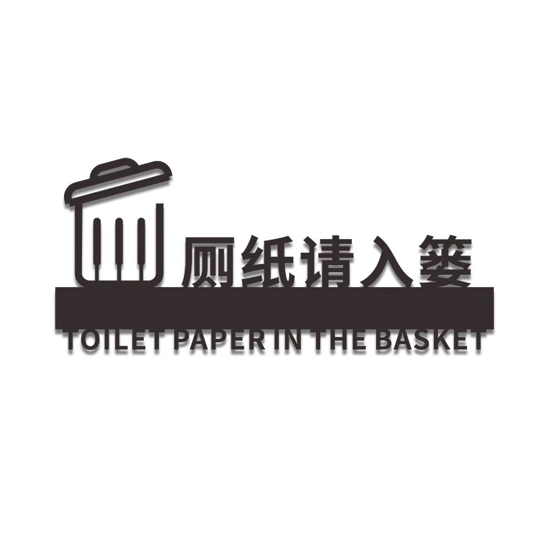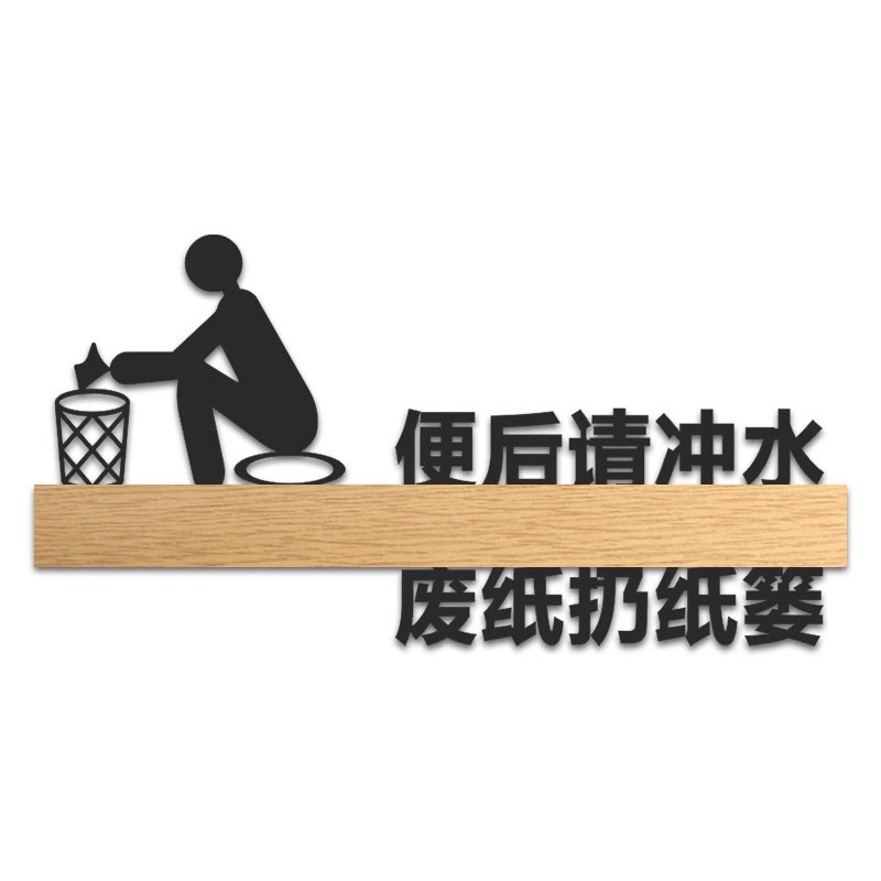 便后冲水厕纸入篓提示标识牌来也匆匆去也冲冲厕所卫生间标志标示