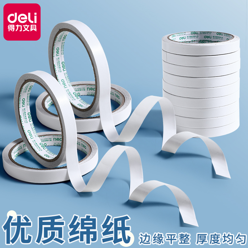 得力双面胶儿童手工制作高粘度强力固定幼儿园小学生文具一年级可撕两面胶双面贴对联墙贴白色薄透明胶带批发