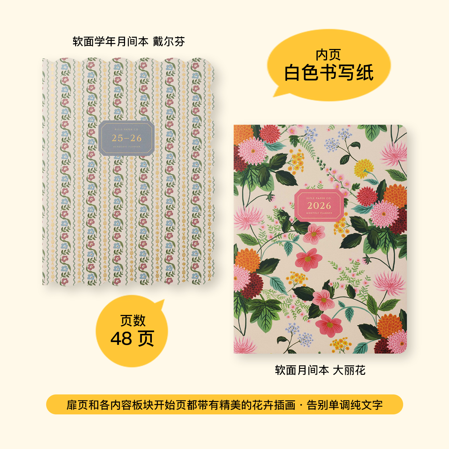 【2026】美国RiflePaperco月计划手帐日程笔记本8月始浪漫印花