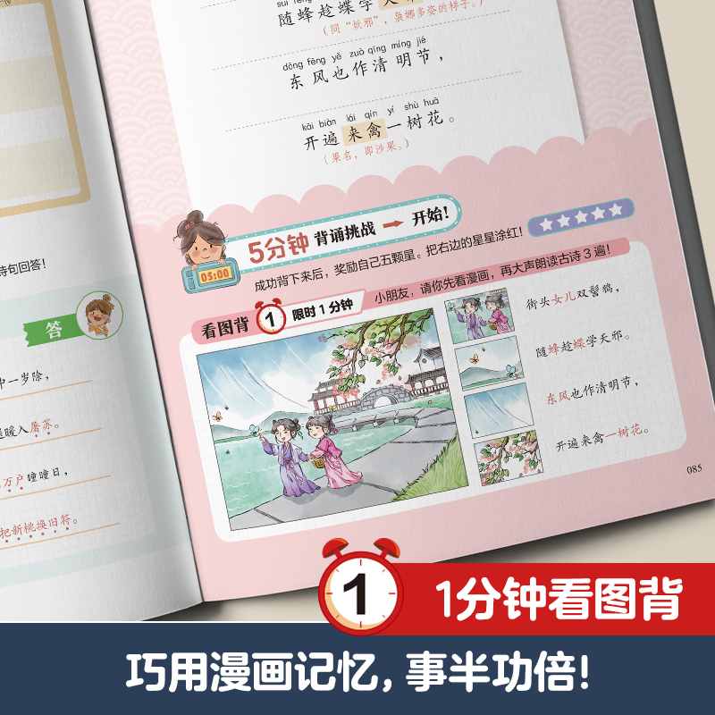 正版 小学语文5分钟快背成语 古诗 小古文 适合6-13岁孩子看漫画背古诗赠送音频常考古诗常用成语经典文言文