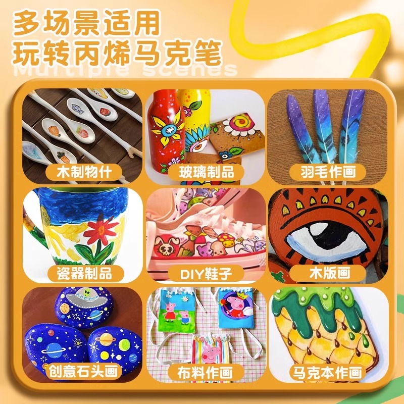 丙烯马克笔儿童咕卡涂鸦笔无毒丙烯颜料防水不掉色画笔12色24色36色水彩笔diy手绘画手机壳衣服双头可洗48色