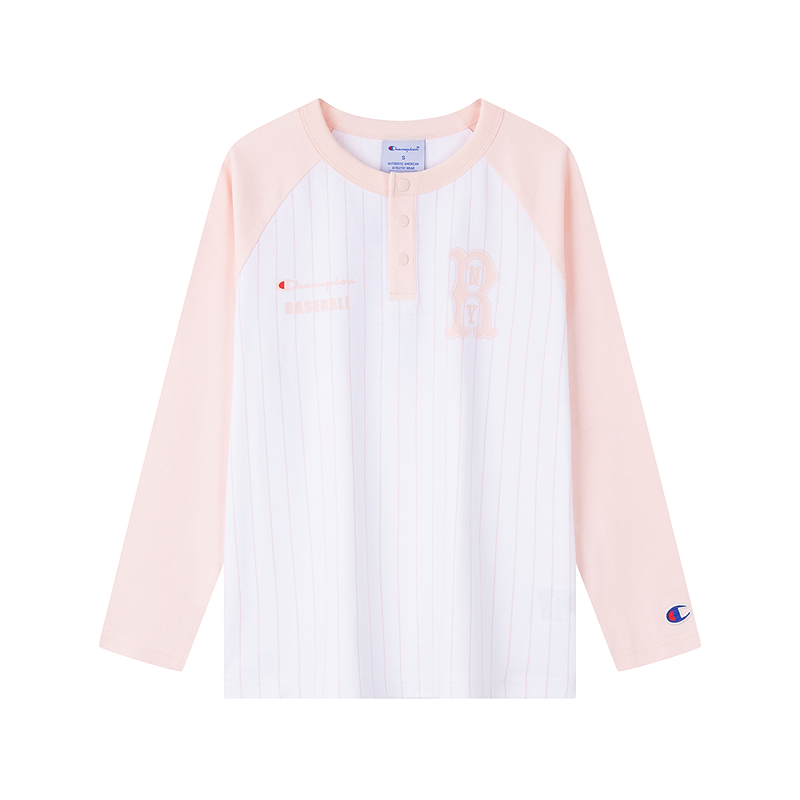 【抗菌棉感】Champion冠军男女童25秋半开襟复古球衣条纹长袖T恤