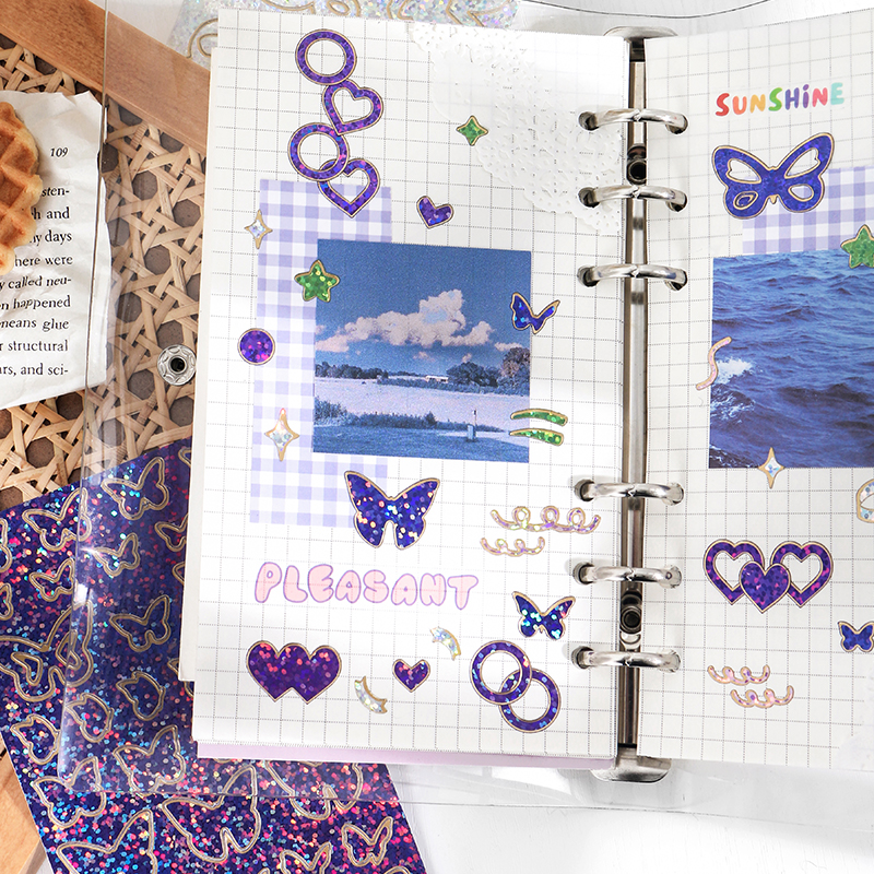 闪闪亮片烫金PVC贴纸 闪耀时刻创意丝带蝴蝶结手帐追星小卡装饰