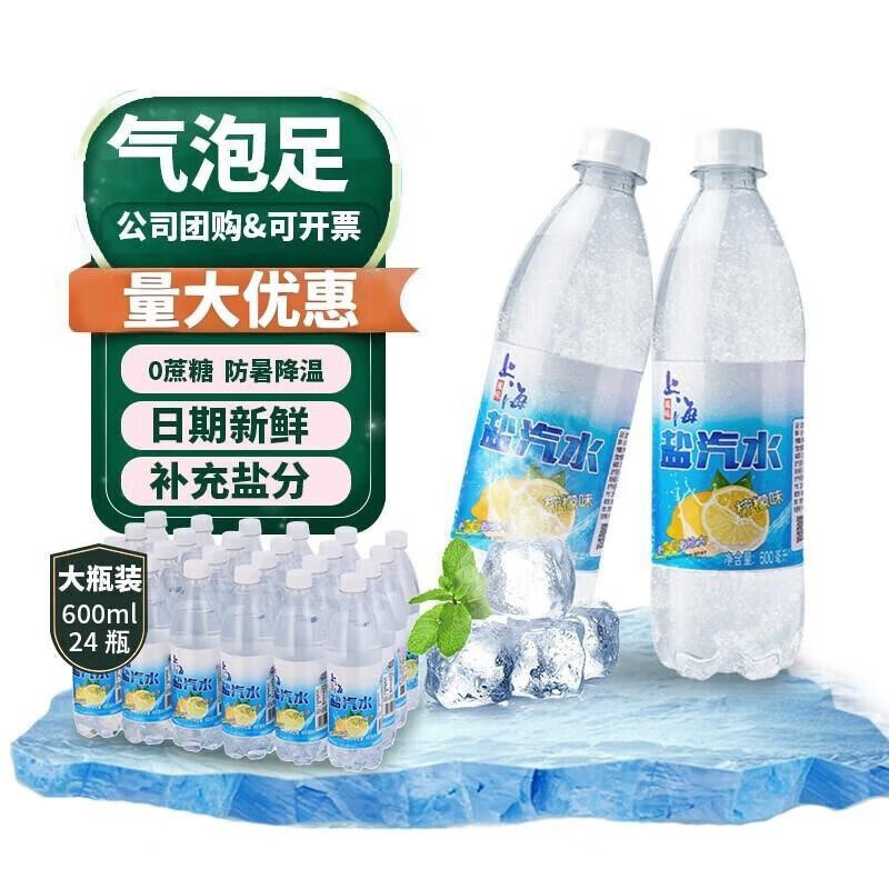 正宗夏日老上海盐汽水24瓶*600ml解渴补盐碳酸饮料瓶装柠檬味大瓶