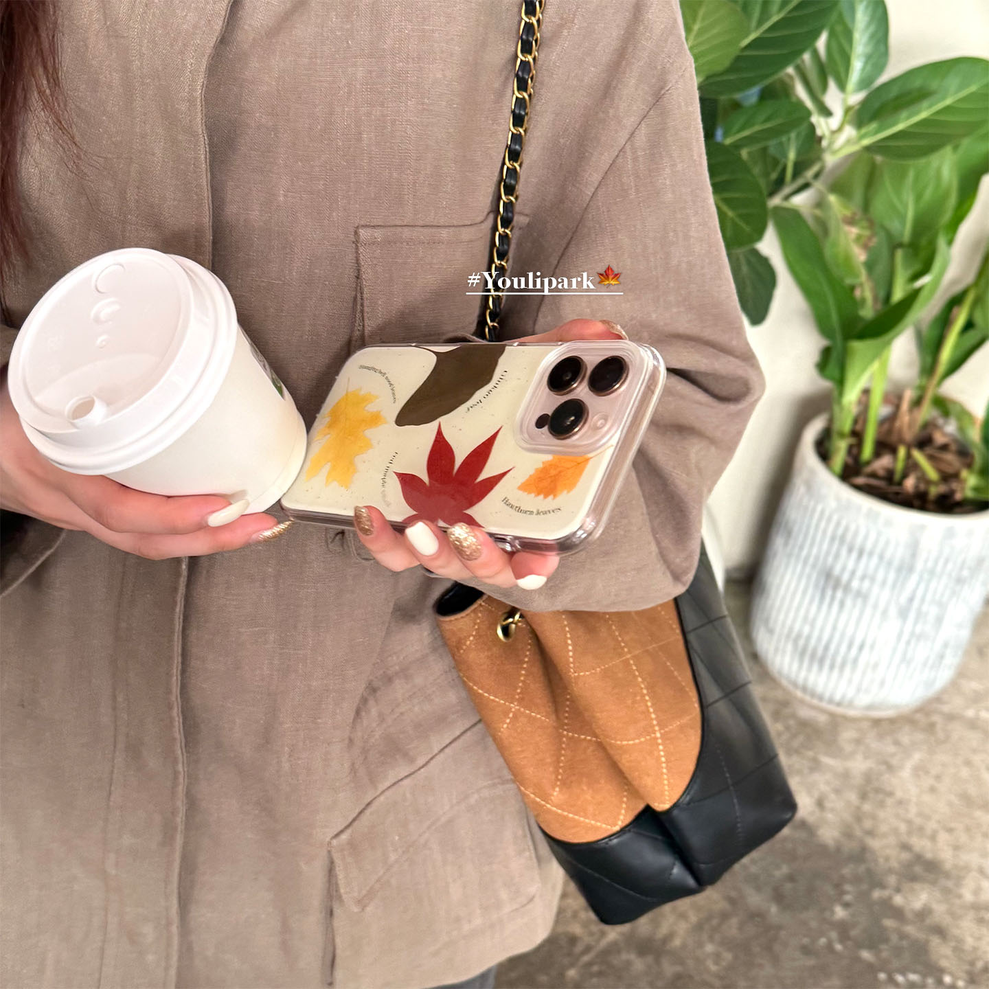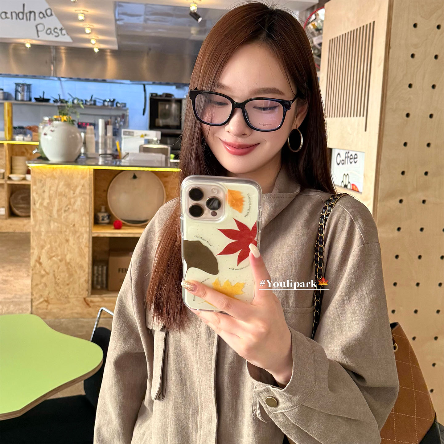 由里公园ins韩系秋冬氛围感枫叶插画17适用17pro苹果17ProMax手机壳iPhone16全包14新款16Promax保护套13少女