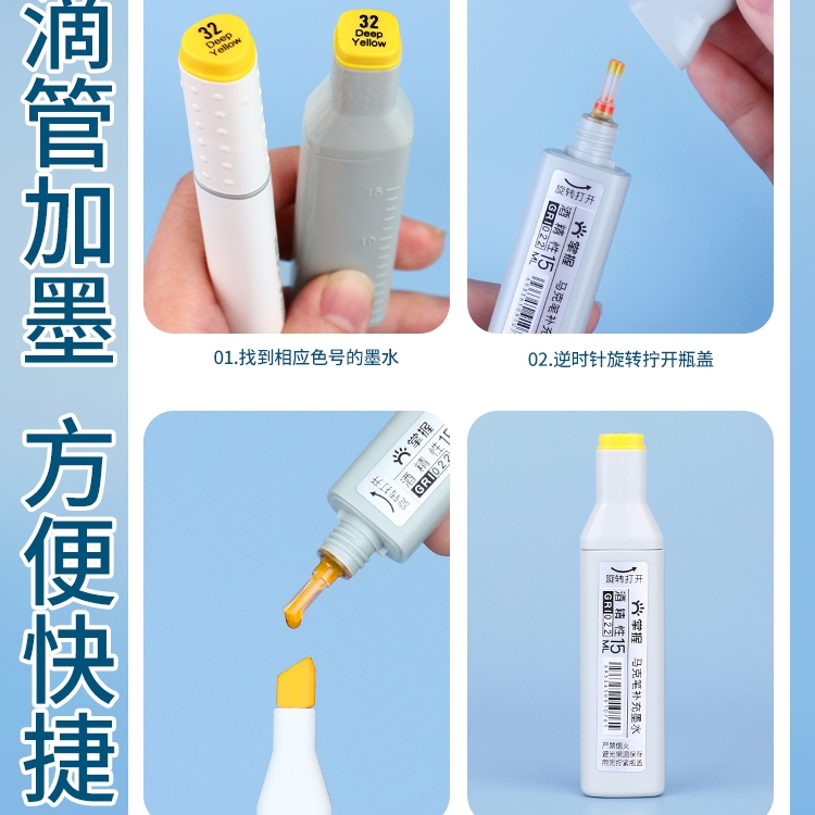 掌握马克笔墨水补充液学生酒精油性通用填充水美术生彩色马克墨囊
