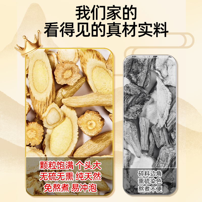 甘肃岷县正宗黄芪中药材主根大片北芪切片天然无硫补气血煮茶泡水