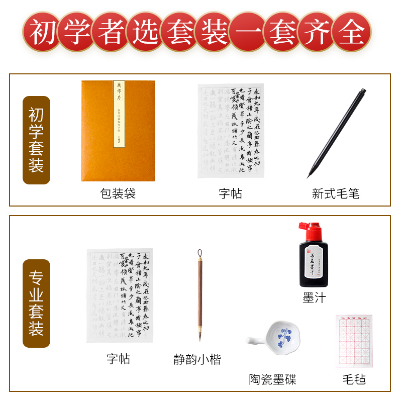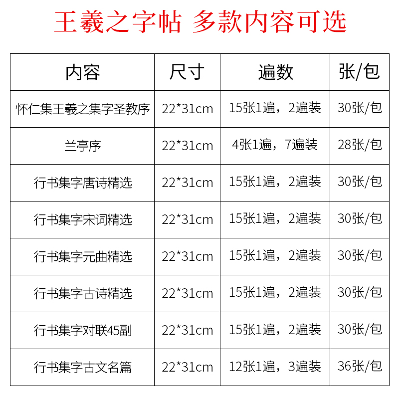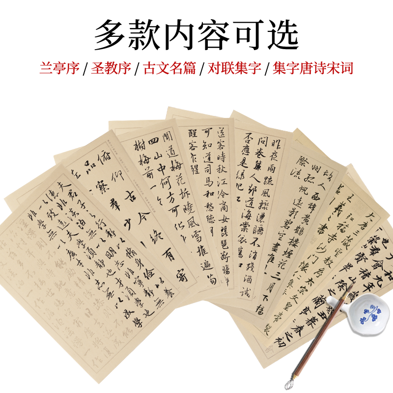 王羲之兰亭序圣教序 行书集字171首唐诗宋词初学者成人行楷毛笔软笔书法入门临摹描红宣纸字帖练字套装