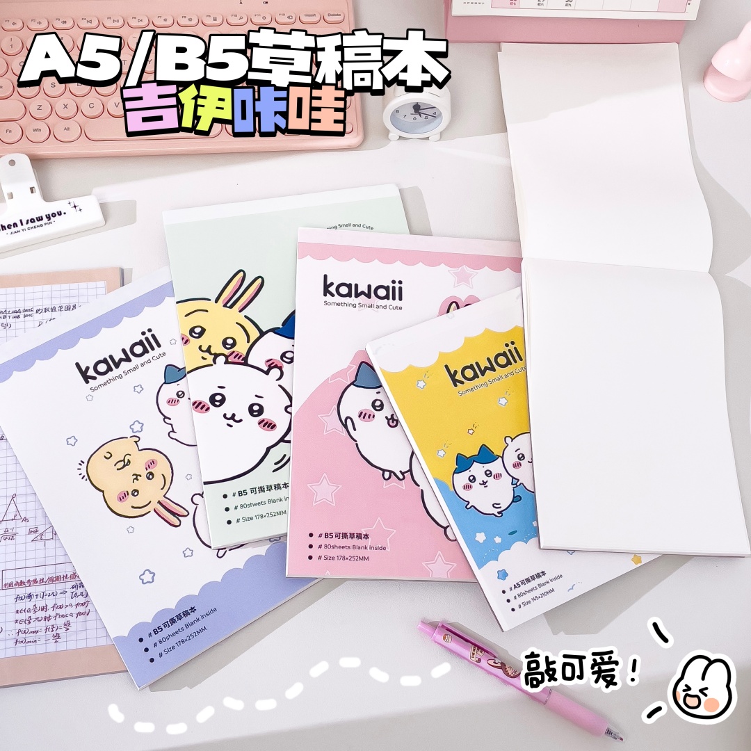 吉伊卡哇B5可撕草稿本A5本图画本口袋本卡通可爱空白本画画本素描