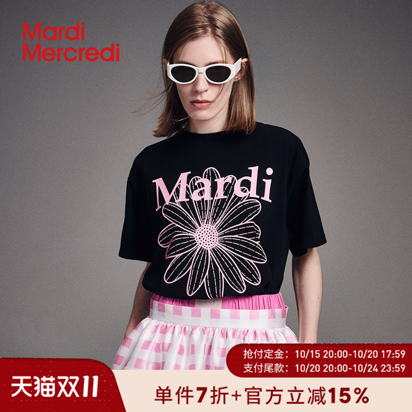 MardiMercredi小雏菊百合三花短袖t恤宽松上衣女夏季新款多巴胺