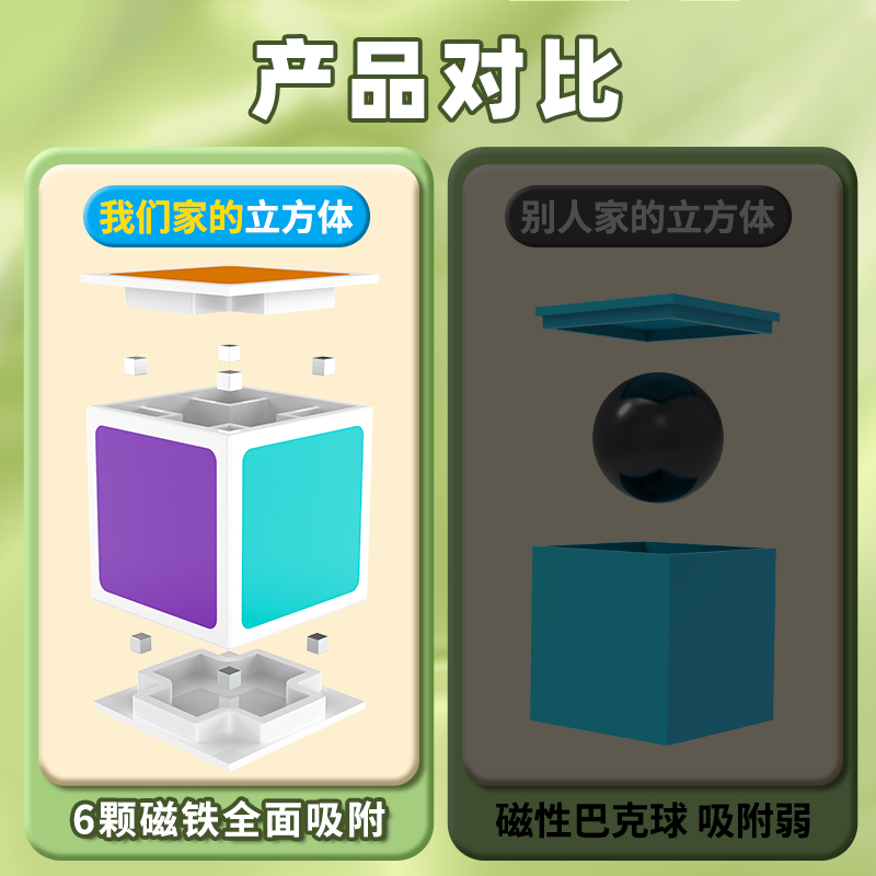六鑫六面六色磁力正方体2cm六面磁吸6色磁性立方体幼儿拼搭玩具小学一二年级数学三视图学习观察教具