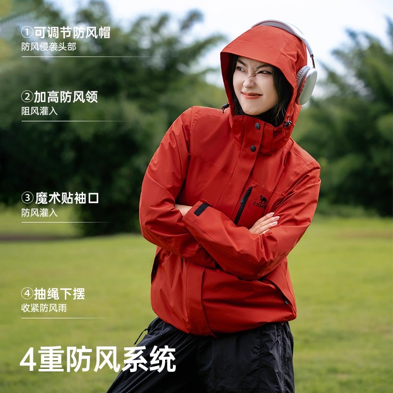 骆驼户外冲锋衣女款25年三合一超好看暴雨级三防骑行登山服外套男