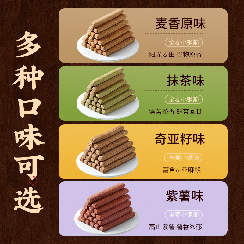 全麦小钢筋代餐棒0卡饼干解馋磨牙棒成人饱腹零食品抹茶超硬抗饿