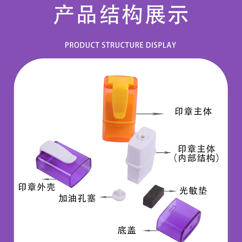笔扣式15*6带弹簧配7MM光敏垫人名小扁章系列印章材料