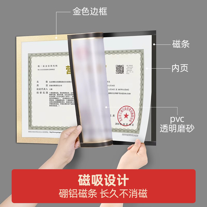 工商营业执照框架正本副本保护套食品卫生许可证框免打孔磁吸相框