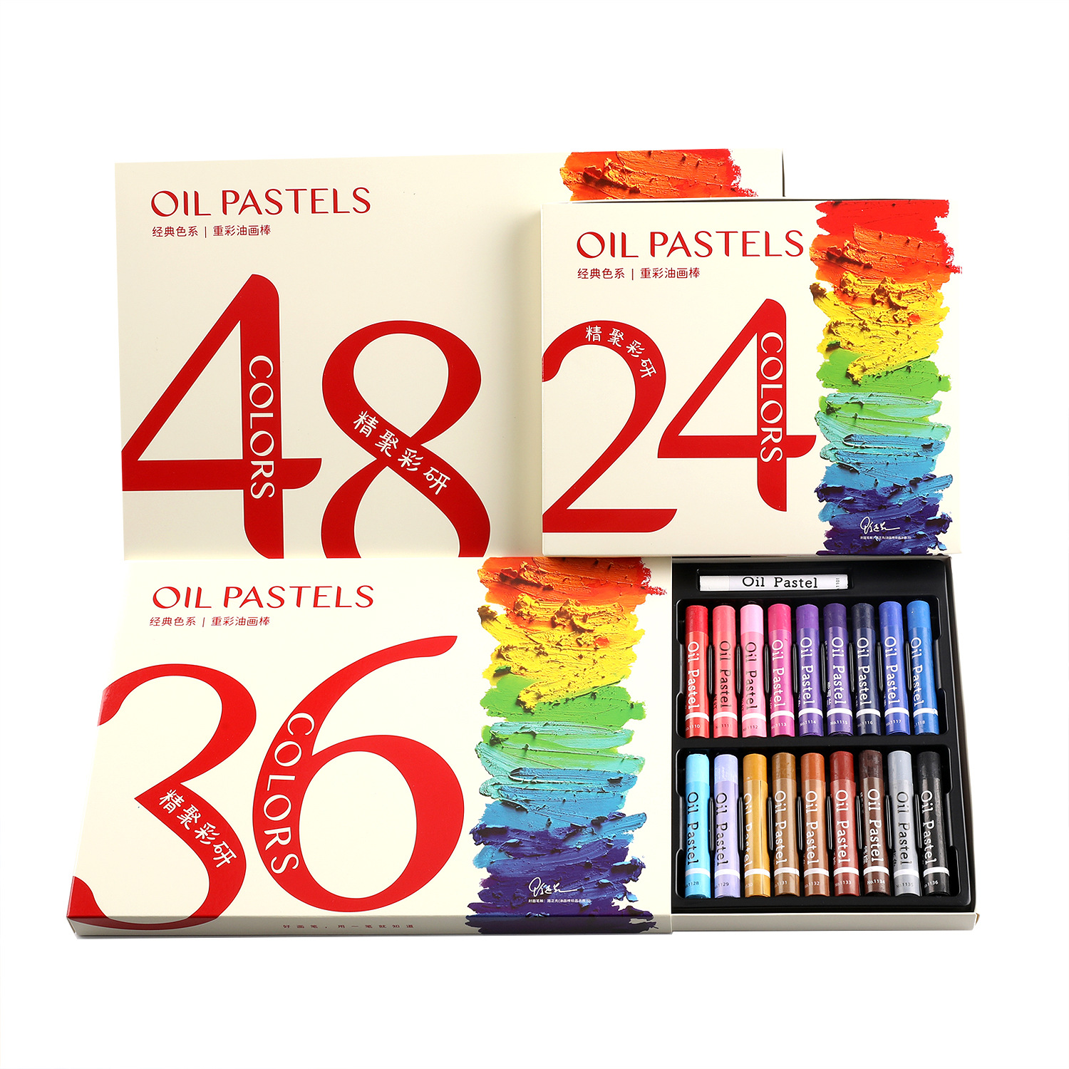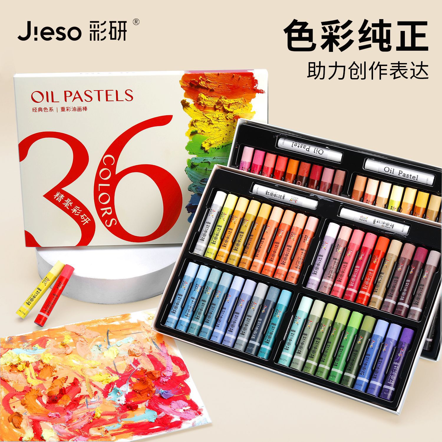 彩研12/24/36/48色米糠蜡油画棒柑橘香超软重彩油画棒diy绘画纸刮刀专用工具套装蜡笔美术专用软性油彩笔