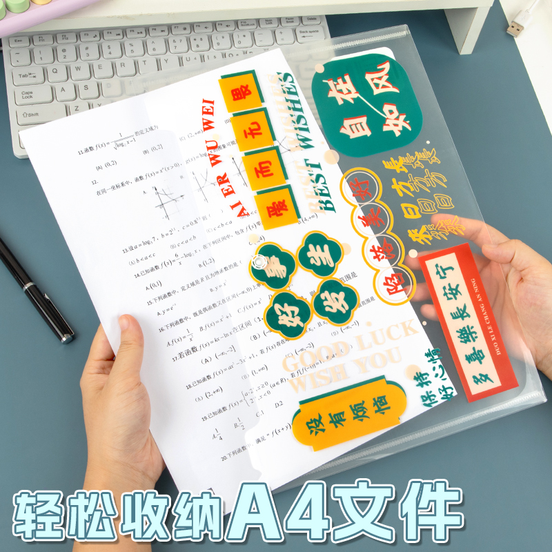 励志透明按扣文件袋a4钮纽扣资料袋加厚防水PP可爱卡通创意复古风儿童小学初中生专用分类收纳文具高颜值塑料