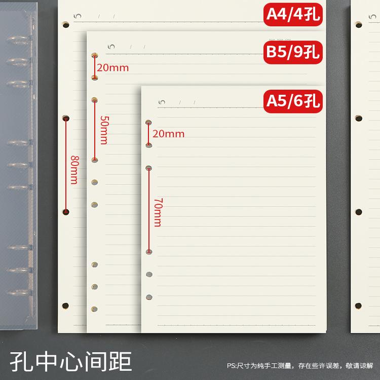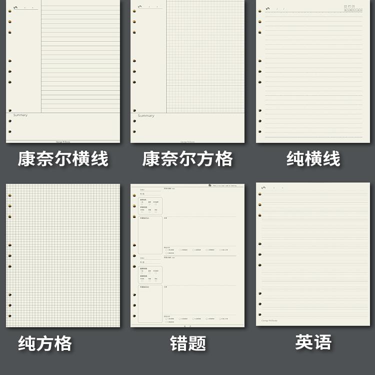 b5九孔活页纸a4活页替芯活页本横线内芯9孔活页夹a5网格空白方格康奈尔笔记本可拆卸替换芯加厚方格活页纸