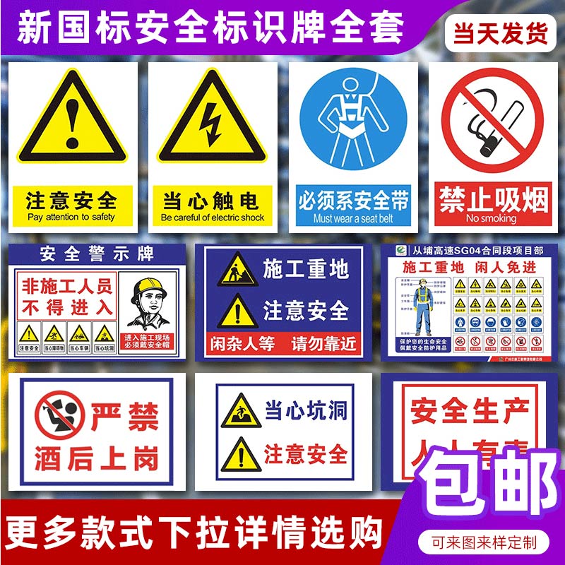 安全标识牌警示牌工厂车间禁止吸烟严禁烟火有电危险提示牌工地施工安全警示牌必须系安全带戴安全帽叉车标识