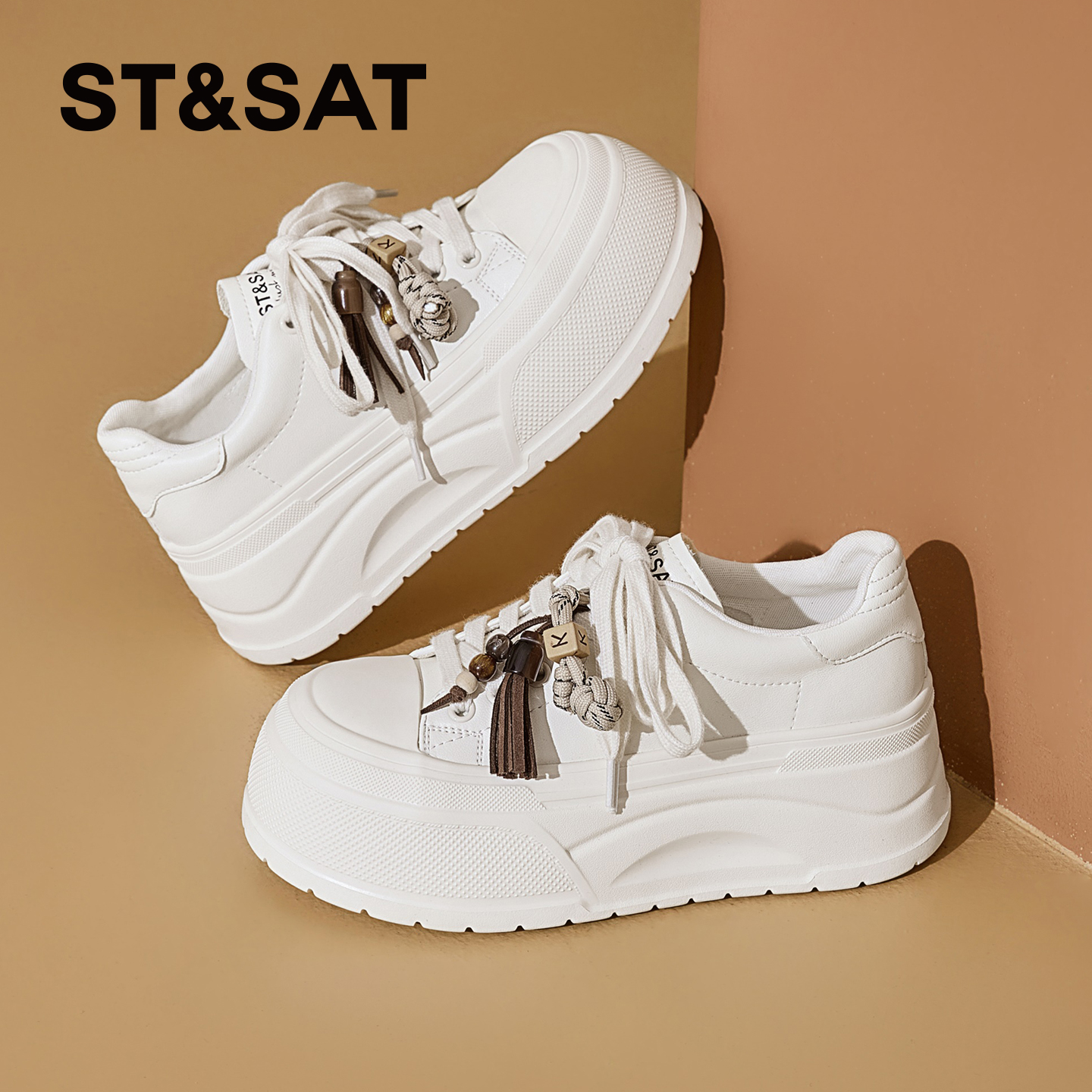 星期六女鞋厚底小白鞋女款2025新款秋冬百搭面包鞋子增高休闲板鞋