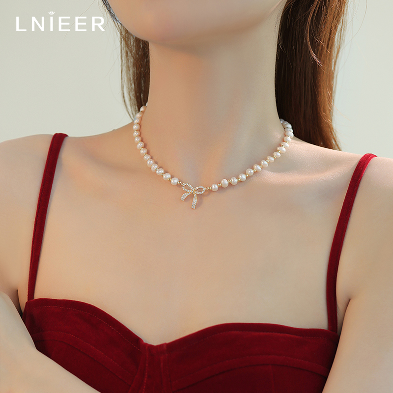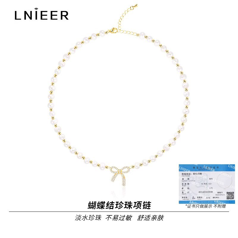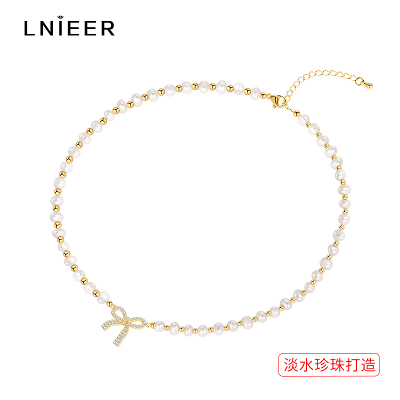 蝴蝶结淡水珍珠项链女小众百搭轻奢颈链2025爆款高级感锁骨链配饰