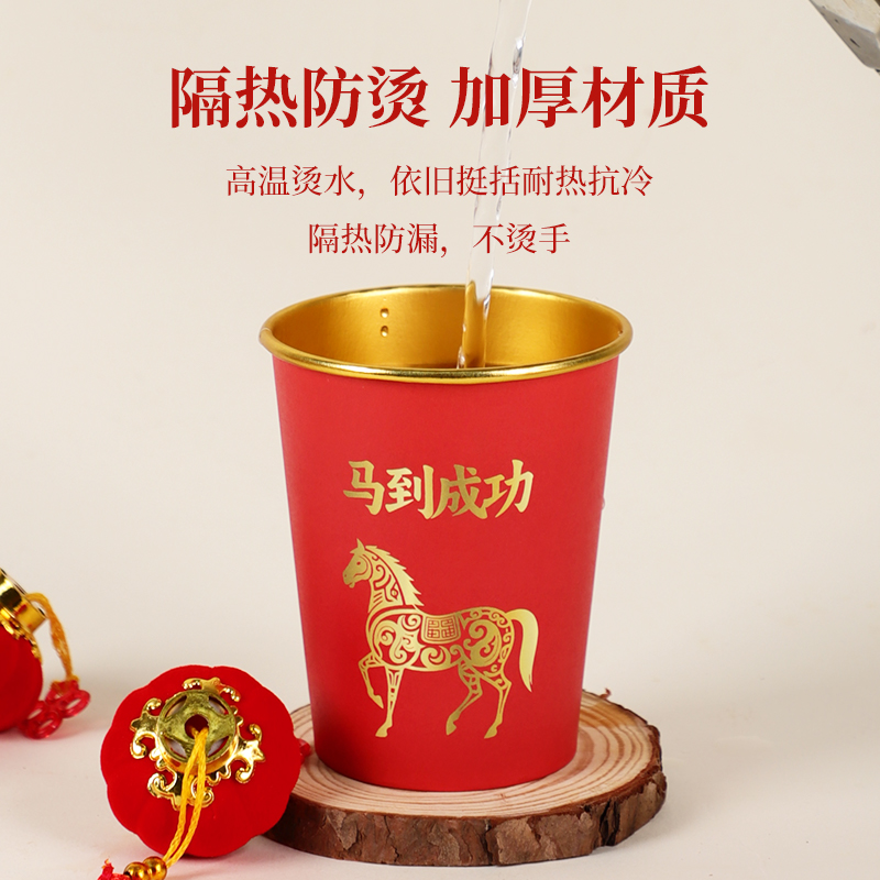 一次性金箔纸杯马年喜庆加厚茶水杯子家用新年春节喜杯子待客纸杯